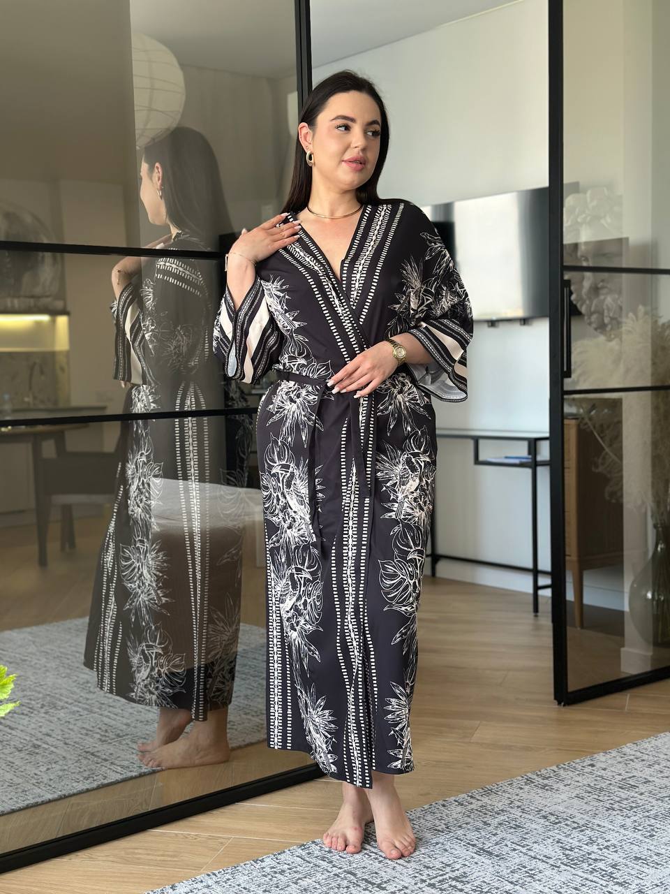 ✔️ Фасон: вільний крій з поясом, який підкреслює талію